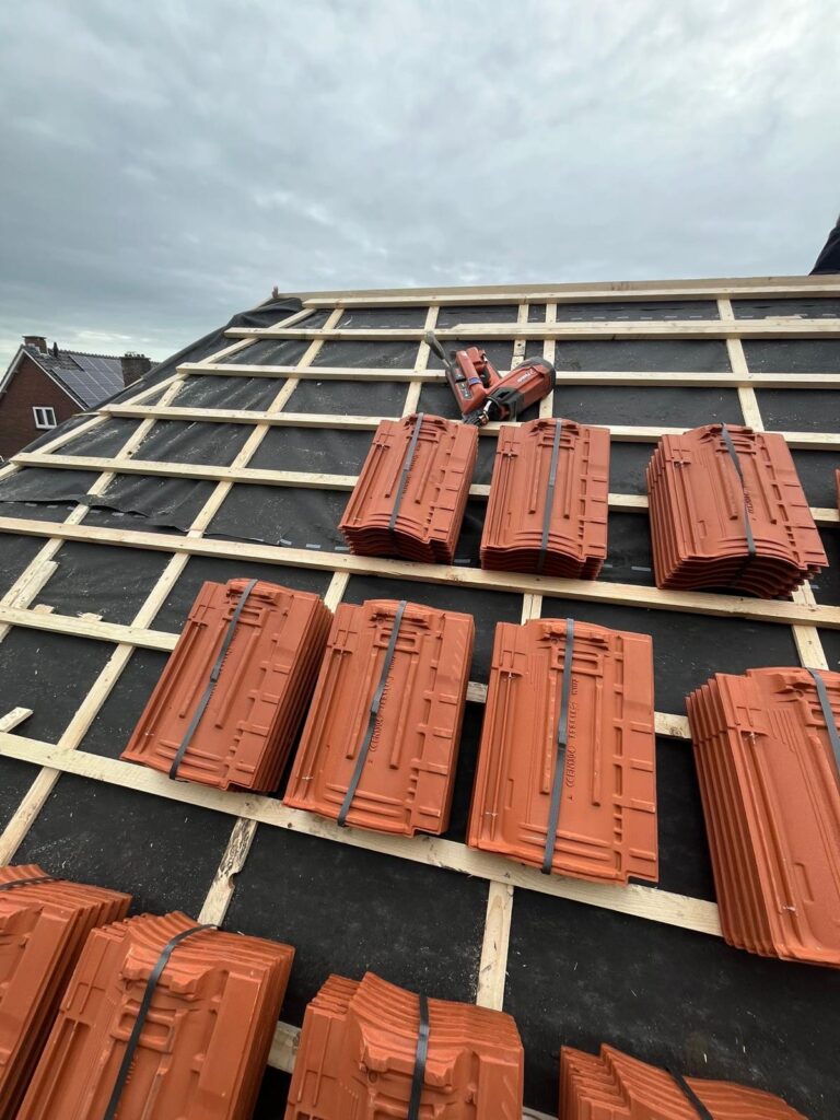 Alle losse dakpannen zijn opnieuw uitgelijnd en verankerd.
